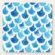 Blue Watercolor Scale Pattern Square Paper Coaster