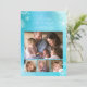 This photo holiday card features your photos and the words "Happy Holidays" in trendy script and snowflakes against a blue watercolor background. Card has a solid blue background back side.