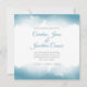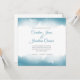 A simple, lovely wedding invitation with watercolor style clouds along the top and bottom edges.