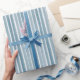 Blue Watercolor Stripes Baby Shower Wrapping Paper