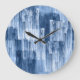 Blue Watercolor Stripes: Geometric Pattern Large Clock