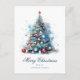 Blue Watercolor Style Christmas Tree Holiday Postcard