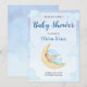 Blue Watercolor Teddy Bear on Moon Baby Shower Invitation