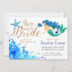 Blue coral watercolor under the sea sweet little mermaid theme with header "Here comes the Bride" comes alive with golden glitter effect. Bridal shower invitation postcard. This will turn your marine themed wedding into a fantastic water wonderland for guests. Perfect invitation for party celebrations on the beach or by the sea.