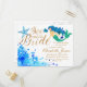 Blue watercolor undersea sweet mermaid golden text invitation postcard