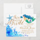 Blue coral watercolor under the sea sweet little mermaid theme with header "Here comes the Bride" comes alive with golden glitter effect. Bridal shower invitation postcard. This will turn your marine themed wedding into a fantastic water wonderland for guests. Perfect invitation for party celebrations on the beach or by the sea.
