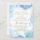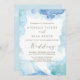 This blue watercolor wedding invitation card is perfect for a modern wedding. The design features soft sky blue and teal watercolor.