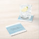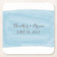 Trendy and stylish Watercolor Wedding Paper Coasters with a rectangle brushed watercolor look blue background. These elegant and modern coasters are easy to customise with your wedding details. For more customisation options, click on the Customise It button.