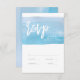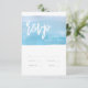 This reply card is part of a matching wedding invitation set. It features a calming blue watercolor texture. Can be personalised with text colour and wording.