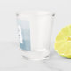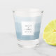 Blue Watercolor Wedding Shot Glass. This chic and elegant dusty blue wedding shot glass features a beautiful watercolor-painted ombre background with a white border bride and groom's names and wedding date. Matching items are in the Watercolor Ombre Collection.
