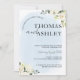 Blue Watercolor White Rose Elegant Wedding Invitation