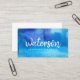 This modern business card design features a chic blue watercolor background with white calligraphy script on the front and a white background with minimal typography on the back. It has a cool, modern look and would make a fabulous first impression for any business. You can further customise this design by changing the background colours, font colours, or adding your own photo.