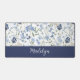 Blue Watercolor Wildflower Monogram Name Desk Mat