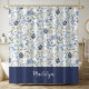 Blue Watercolor Wildflower Monogram Name Shower Curtain