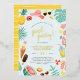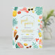 Blue | Watermelon Pineapple Tropical Pool Party Foil Invitation. Celebrate in style with these fun invites. This design features a border of summer elements, "pool party" in modern script lettering, and your party information in trendy typography. The border consists of a pineapple, camera, sun hat, shades, tropical leaves, flowers, ice lollies, lemonade, flip flops, beach balls, lemons, doughnuts, watermelon, ice cream, and more! Click on "Personalise this template" to change the wording. If you want to change fonts, sizes, colours, or placement, scroll down to "Click to customise further" and use our design tool! Visit our store for more designs!
