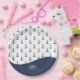 The pieces of this elegant wedding suite feature classic nautical styling with a clean, minimalist look. Stylistic waves in shades from aqua to navy blue and an anchor illustration provide unique accents. A tiny anchor pattern in navy blue and white give this coordinating paper plate a striking appeal. Perfect for yacht club, boat, beachside or summer destination weddings. Search ID836 to see this complete suite and others with alternate marine element accents.