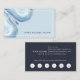 Chic loyalty business cards for your salon, spa or beauty services feature your name or company name layered on ethereal pale blue with two geode agate slice watercolor illustrations. Add your full contact information to the back in white on navy blue. Includes your custom loyalty offer (shown with "enjoy 20% off any service after five visits"), and six punchouts.