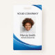 Simple but not plain, blue wave design along the bottom edge and up the left side and a little splash of colour in the upper right corner. Add your company name, employee photo, and position to complete the front. If you need a barcode, add it to the back. Don't need a barcode, remove the one that is currently present.