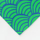 This medium fleece blanket has an art deco design of blue curved lines in a triangle shape on a field of green repeated across the design. Want a different colour? Message me.