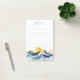 Add whimsical marine theme to liven up your everyday with our colourful Blue Waves & Happy Whales Customisable Post-It Notes featuring three playful whales frolicking in a serene sea under a golden sun. The design is captured in shades of blue, teal, yellow, gold, pink and purple. All text can be updated to create personalised stationary.