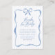This blue wavy bow baby shower enclosure card is on trend right now. It features a hand-drawn wavy border and ribbon and bow in watercolor texture. The "books for baby" headline is in an elegant script font.