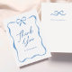 Blue Wavy Ribbon Bow Baby Shower Flat Thank You Card