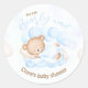 Cute Stickers with teddy bear for boy baby shower in blue and beige. Easily personalise the text. Great for a lovely boy baby shower party all year round. :) - Kate Eden Art