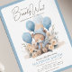 Welcome to a world of whimsy and charm with our Blue We Can Bearly Wait Boy Baby Shower Invitation featuring a delightful watercolor illustration of a cute baby bear donning blue clothes and a matching hat. The bear is surrounded by a beautiful array of boho flowers and blue balloons, expertly painted to capture the softness and sweetness that only a baby brings. This baby boho baby shower invitation with a boho muted colour scheme is sure to set the tone for your special celebration..