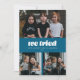 This funny, modern holiday card features the words "we tried" on a blue background with a space for a photo at the top and two square photos at the bottom. Customise it with your name and the year.
