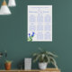 Campanula bell flower floral wedding seating plan in pretty blue, green and white. Wildflower painting on a white background. Edit this wedding seating table chart with your own seating arrangements and guests names. Perfect for those who like simplicity and romance. Ideal for both church, country style, garden and simple registry weddings. Design and fine art watercolor painting by Sarah Trett.