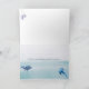 This Warmest Wishes holiday greeting card features a watercolor blue whale swimming with a jellyfish. They are celebrating the holidays with decorative ornaments. Inside Greeting ~ "From our holiday paradise to yours..." The greeting can be personalised to read as you wish.