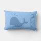 Blue whale lumbar pillow with custom baby name. Cute baby shower or 1st Birthday gift idea for boy's baby room or nursery. Animal cartoon fish design for newborn child and new parents. Personalised presents for newborn child.