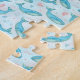 This cute jigsaw puzzle includes an original, repeating whale pattern. It's made in pretty teal blue with hints of coral pink, all on a light blue background. Little nautilus shells, anchors, coral, lobsters, ship wheels, and starfish dot the spaces between swimming blue whales. Choose your own puzzle size and piece count.
