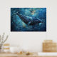 Blue whale swimming in the sea poster