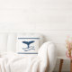 Design by Sandy Closs part of the ocean themed decor Blue whale tale and stripes on white on one side and navy and white strips on back.