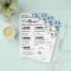 Blue flowers What is on your Phone Bilingual Baby shower game. English and Spanish version games included (front and back). Change Mum to be's Name to the template for English and Spanish version. For more customisation (change question and other wording, font colour, font style ), click on personalise, scroll down and click on the link "click to customise further". HOW TO PLAY: Guests search through their phones for the items listed and add up their points of the items found. The person with the most points wins.
