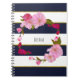 Blue White and Gold Modern Floral Chic Glam Notebook