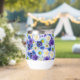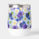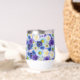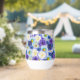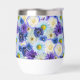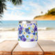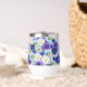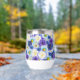 Oversized blue and white flowers. Blue and white are symbols of friendship and loyalty. Blue and white floral print for statement dressing and decor. Lovely blue and white floral design with a touch of yellow, pretty wine tumbler for a birthday, wedding, or special event.