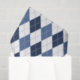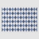 This geometric pattern tissue paper features a dark blue, light blue and white argyle plaid pattern with grey "stitching" extending diagonally across the diamond shapes - by katz_d_zynes