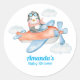 Blue White Baby Shower Penguin Pilot Classic Round Sticker