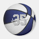 This cool basketball themed magnet features the image of a realistic basketball with alternating blue and white recolored panels - easily customise with the athlete's name & jersey number - by katz_d_zynes