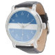 Enjoy the dark blue, white, and powder blue look on this watch face.