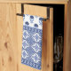 Blue and white bohemian style design on a kitchen tea towel