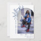 A wedding save the date announcement in blue and white with your favourite photo in an arch with a blue line drawn floral bouquet behind the arch. Add your wedding website QR Code on the reverse.