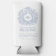 Blue white botanical monogram wedding photo seltzer can cooler
