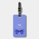 A blue background. Decorated with a blue bow. Personalise and add your monogram letters and full name on the front. Your contact information on the back.