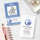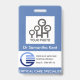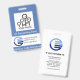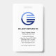 A simple blue and white column box design. The blue layer above houses a photo template option with photo size of 1,000 x 1,000 pix. Your prestigious name is just below the logo. In the white layer lies an optional blue global logo that you can use. Beside it are the organization and department name alongside the employee number. The job title sits at the base of the card.
