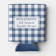 Keep your drinks cool in style at a family picnic with can coolers featuring a classic blue and white buffalo check plaid with up to 3 lines of text in a white rectangle in the centre on each side. Perfect for an annual family reunion or a new tradition. Personalise it with your name and text in the sidebar.