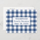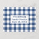 Invite relatives to a family reunion with postcards featuring a classic blue and white buffalo check plaid with up to 3 lines of text in a white rectangle in the centre on the front. The date, time, location, and contact information are on the back. Perfect for an annual barbecue, picnic, or a new tradition. Personalise it with your name and party details in the sidebar.