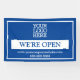 Blue White Business Logo We're Open Banner